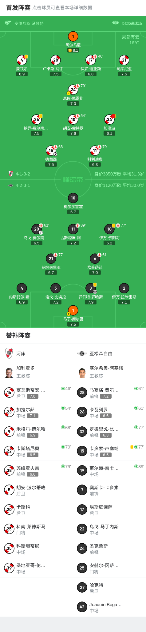 第52分钟,河床球队加洛波吃到第二张黄牌。